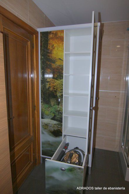 Armario para baño revestido en cristal serigrafiado.