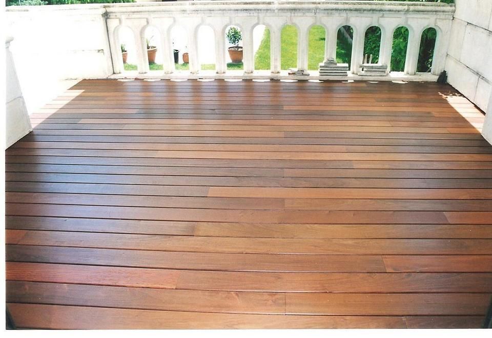 Instalación de tarima de Ipé, tratada al aceite, en terraza exterior.